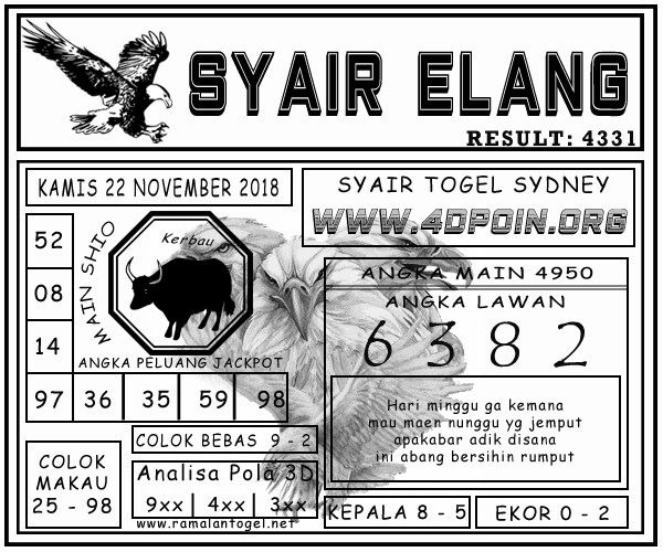 Kode Syair SD KAMIS 22 November 2018 GOsyair SEDIA KODE SYAIR SGP ADA