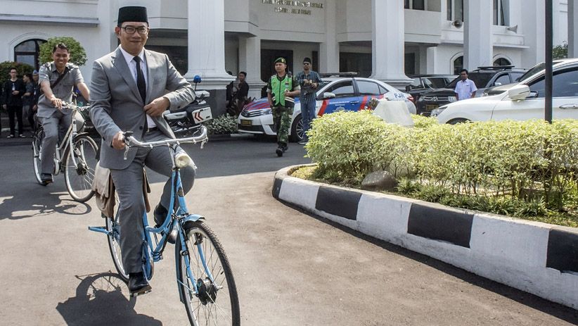 Ridwan Kamil Naik Sepeda Ontel saat Perkenalan dengan DPRD Jabar
