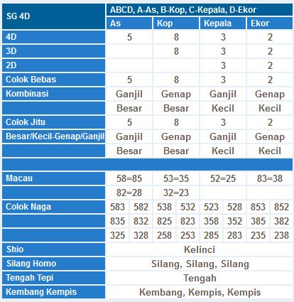 Jika tertarik segera daftar toto 4d secara gratis agar mendaptkan semua fasilitas seperti prediksi togel jitu, result togel hari ini tercepat dan akurat. Kehadiran situs toto togel terpercaya di indonesia selalu memperhatikan pelayanan, dengan memberikan layanan kepada member togel toto 4d tercepat terutama bila gabung jadi member toto togel. Lihat hasil data keluaran hk dan result pengeluaran sgp hari ini untuk pasaran judi togel hongkong serta togel singapore pools di sini.. Terhitung sejak tahun 1960-an, permainan toto sgp ataupun togel sgp sudah banyak di gemari masyarakat kala itu. Dulunya kita sangat sulit sekali dalam mencari result keluaran sgp hari ini.